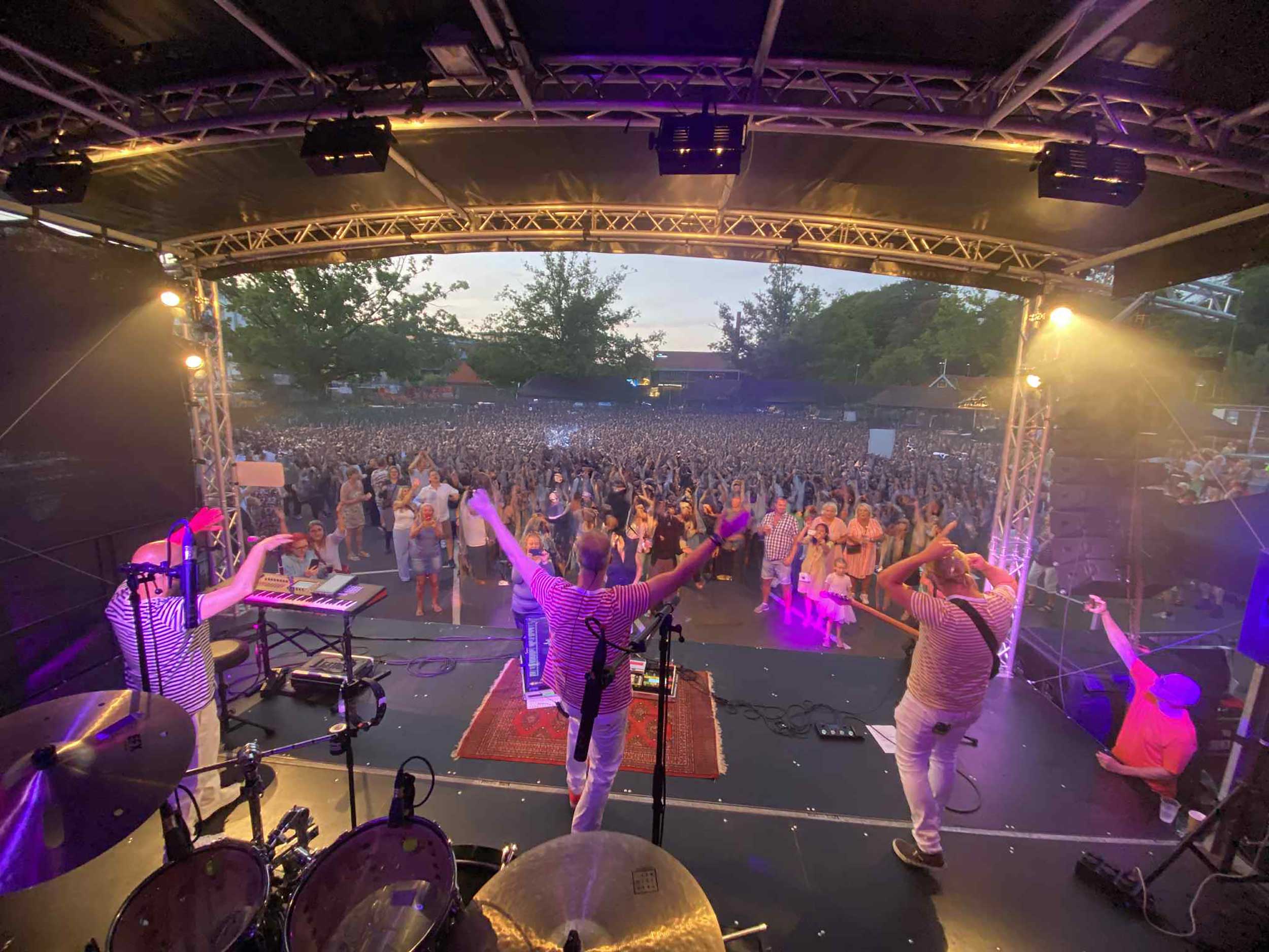 2025 har været et fantastisk år for Hula Hula, og striberne er i absolut topform – både musikalsk og på tøjet. For bandet spiller altid i deres karakteristiske stribede t-shirts, der er blevet et fast kendetegn for den festlige stemning på scenen.